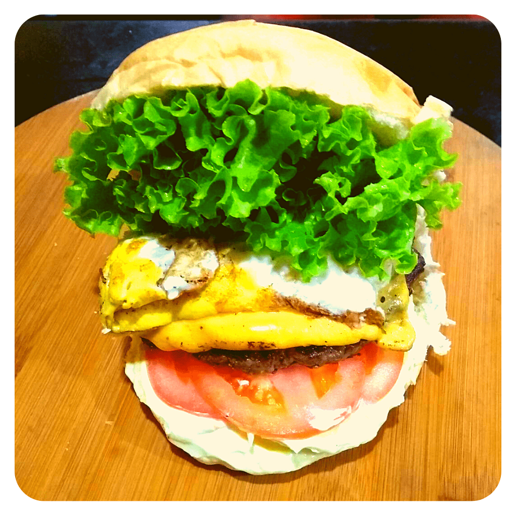 Pão, Hambúrguer Bovino de 130g, Queijo Prato, Ovo, Alface, Tomate e Maionese